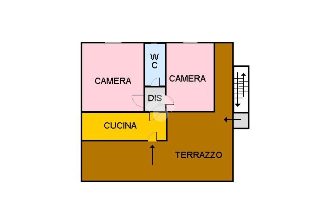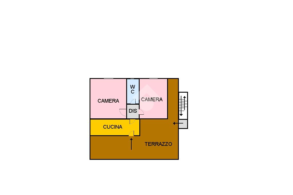 L'appartamento è composto da ingresso, cucina, 2 camere da letto, bagno e terrazzo in comune di 45 metri quadrati circa.